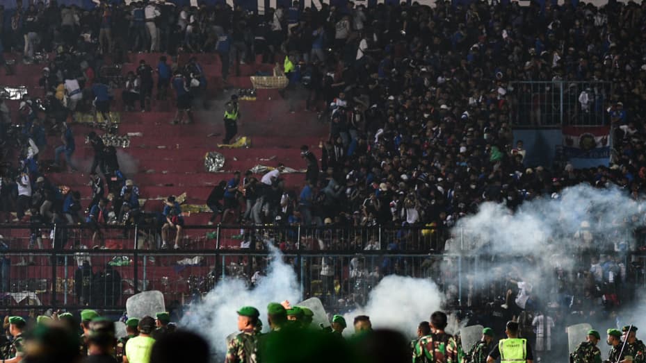 About 180 people were also hurt after Arema FC’s loss to rivals Persebaya Surabaya in East Java on Saturday.