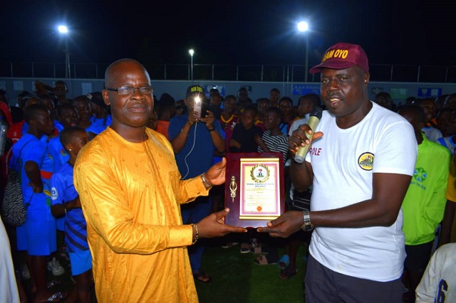 The award which is a recognition of Chief Sanusi’s unparalleled gestures towards the uplift of sports in Nigeria in general and South-West in particular was presented on Friday evening by the Chairman, Oyo State’s Sports Council, Mr Gbenga Adewusi Arole.