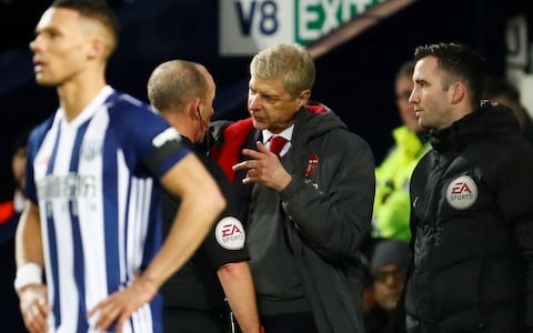 Arsenal boss Wenger was incensed after Dean awarded a last gasp penalty at West Brom for handball against Calum Chambers.